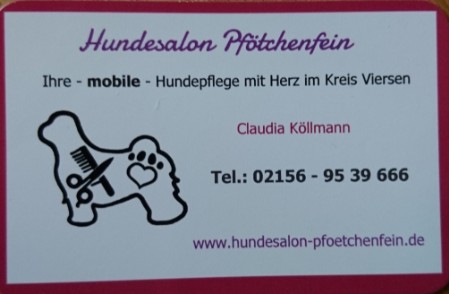 Meine - mobile - Hundepflege biete ich (nebenberuflich) nach Terminvereinbarung bevorzugt dienstags und freitags ganztägig an.